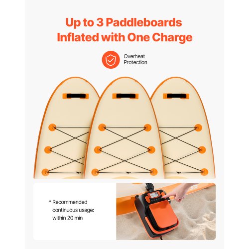 VEVOR Pompa per Sup, a Batteria Ricaricabile, Pompa d'Aria Portatile per SUP a Doppio Stadio con Funzione di Spegnimento Automatico e Sgonfiaggio, per Paddle Board Gonfiabili, Tende e Materassini