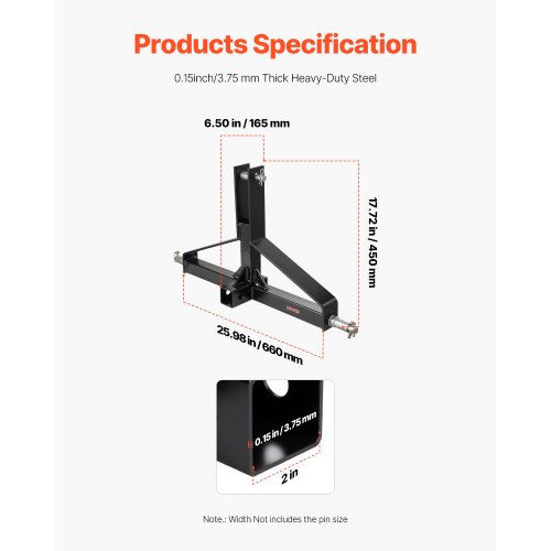 VEVOR Gancio di Traino a 3 Punti con Ricevitore da 50,8 mm, Attacco Rapido a 3 Punti, Adattatore per Barra di Traino per Trattori per Impieghi Gravosi, Acciaio al Carbonio Colore Nero