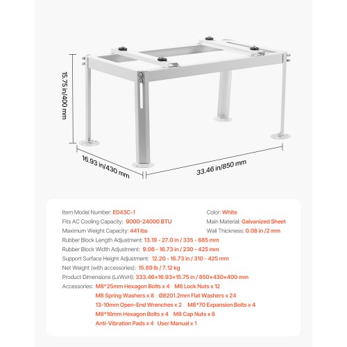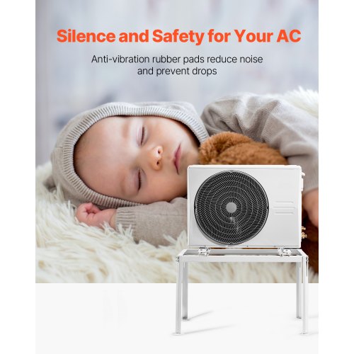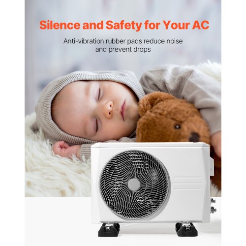 VEVOR Kit Base di Montaggio a Pavimento, per Sistemi di Condizionamento Mini Split, per Pompa di Calore AC da 9000-36000 BTU, Cuscinetti Antivibranti in Gomma per Impieghi Gravosi, Carico 1000 kg