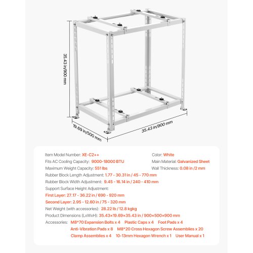 VEVOR Supporto da Terra Mini Split, Supporto Antivibrazioni per Condizionatore d'Aria, Senza Condotti da 9000-18000 BTU, Pompa di Calore, Capacità 250 kg, Doppio Livello Altezza Regolabile