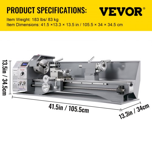 VEVOR Tornio per Metalli Legno, 220 x 450 mm, Tornio di Precisione da Banco per Metalli, Avanzamento Automatico, Variabile Velocità 2500 Giri al Minuto, Motore Senza Spazzole 1250 W