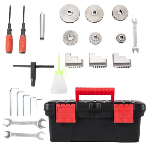 VEVOR Tornio per Metalli, 210 x 370 mm, Tornio di Precisione da Banco, Variabile Velocità 2500 Giri al Minuto, con Mandrino Ingranaggio 550 W per Elaborare Metalli Morbidi Legno Plastici