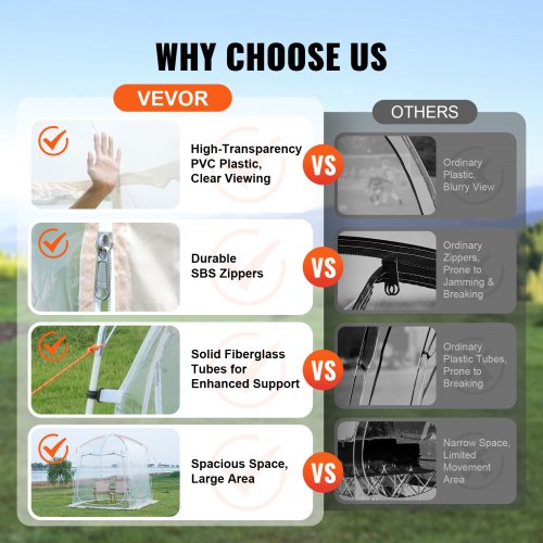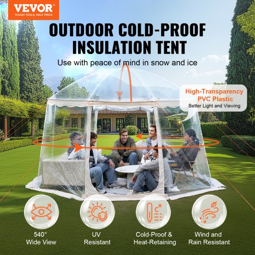 VEVOR Tenda a Cupola da Giardino Trasparente 3,6 x 2,2 m, Tenda da Giardino Trasparente per ca. 4-7 Persone con Finestre, per Esterni, Campeggio, Cortile, Feste, Eventi all'Aperto