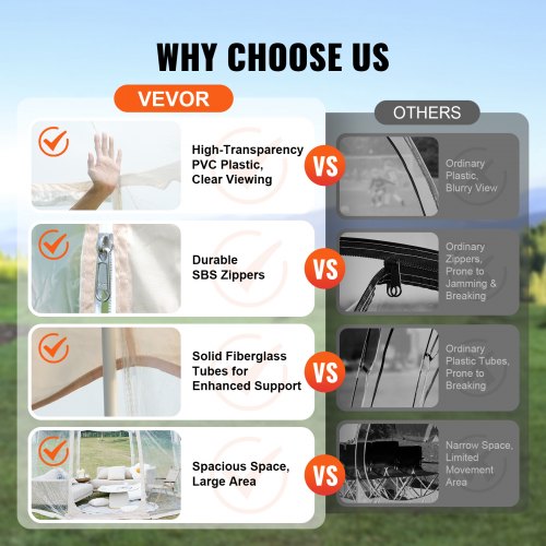 VEVOR Tenda a Cupola Copertura da 2,9 m Tenda da Campeggio a Cupola per Esterni, Tendone da Giardino con Finestra Trasparente, Copertura Impermeabile Trasparente per Campeggio, Viaggio, Eventi, Feste