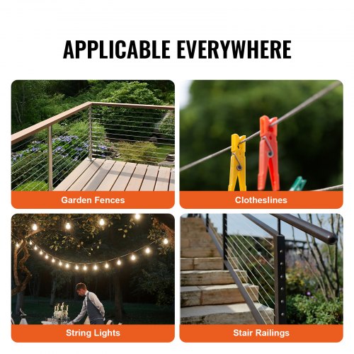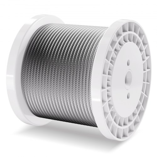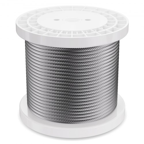 VEVOR Kit di Cavi Metallici da 3,18 mm 182,3 m Cavo in Acciaio Inossidabile 316, con Taglierino, Guanti, Resistenza alla Rottura di 7,1 KN Costruzione di Fili 7 x 7 di Qualità Aeronautica Marina