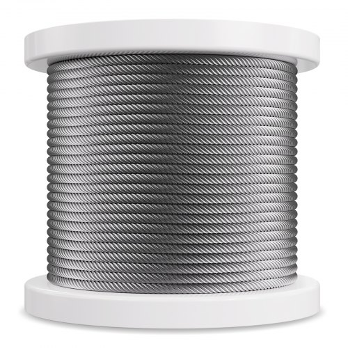 VEVOR Kit di Cavi Metallici da 3,18 mm 305 m Cavo in Acciaio Inossidabile 316, con Taglierino e Guanti, Resistenza alla Rottura 7,1 KN Costruzione di Fili 7 x 7 di Qualità Aeronautica Marina per Scale