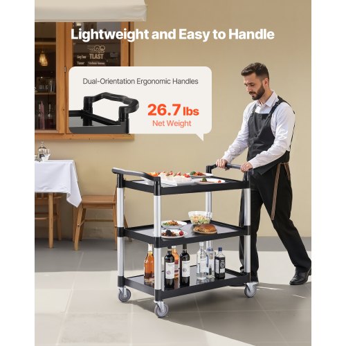 VEVOR Carrello Portavivande, Capacità di Carico 226 kg Carrello per Servizi Alimentari in Plastica a 3 Livelli da 790 x 490 mm con Ruote Girevoli 360° per Magazzino, Ufficio, Casa, Ristorante, Cucina