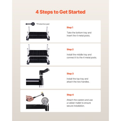 VEVOR Carrello Multiuso 4 Ripiani a Rotelle Carrello Portaoggetti 370 x 355 x 1065mm Ruote Bloccabili con Maniglia, Carrello Mobile Materiale PP Portaoggetti Salvaspazio per Ufficio Cucina Colore Nero