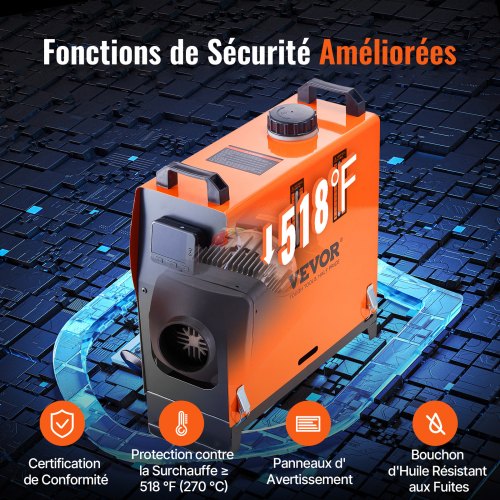 VEVOR Diesel Riscaldatore d'Aria Diesel, WF 5001 Potenza 8 KW 12 V Autocarri Camper per Il Riscaldamento della Cabina di Vari Veicoli Diesel, Come Auto, Camper, Autobus, Furgoni, Camion, Barche, ecc