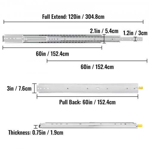 VEVOR Kit Guida Scorrevole per Cassetti con Cuscinetti a Sfera, Lunghezza 152,4 cm, Guida Cassetto Estraibile 60 Pollici, Capacità di Carico 500 Libbre, con Bloccaggio, Binari Cassetti Scorrevoli