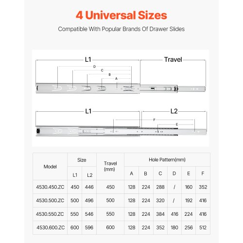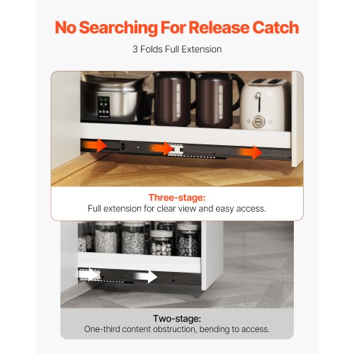 VEVOR 121,9 cm Kit Guida Scorrevole per Cassetti con Cuscinetti a Sfera, Guida Cassetto Estraibile 48 Pollici, Capacità di Carico 500 Libbre, con Bloccaggio, Binari Cassetti Scorrevoli