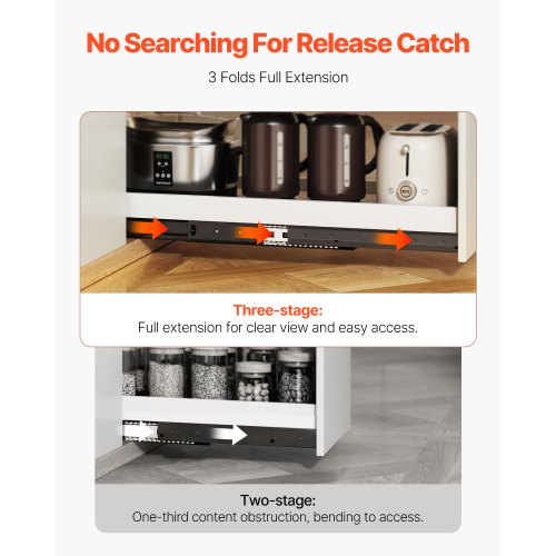 VEVOR 81,3 cm Kit Guida Scorrevole per Cassetti con Cuscinetti a Sfera, Guida Cassetto Estraibile 32 Pollici, Capacità di Carico 500 Libbre, con Bloccaggio, Binari Cassetti Scorrevoli