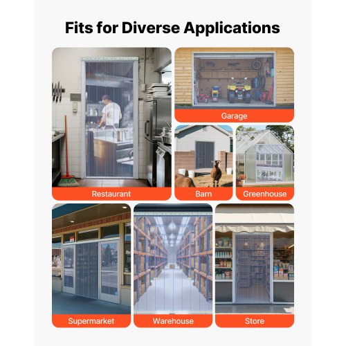 VEVOR Tenda a Strisce in Plastica Spessore 2mm, Altezza 2,4m, 12 Strisce di Tenda Larghezza 1,8 m per Isolamento per Congelatori Magazzini Garage, Tenda in Plastica Impermeabile per Porte