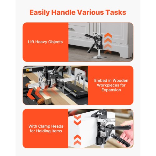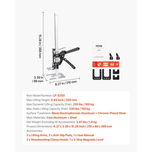 VEVOR Cric a Braccio per Risparmiare Lavoro, 2 PZ, Carico di 150 kg Cric a Braccio in Metallo con Livella Magnetica, Sollevamento Fino a 180 mm, Altezza Regolabile, per Porte, Finestre, Mobili, Nero