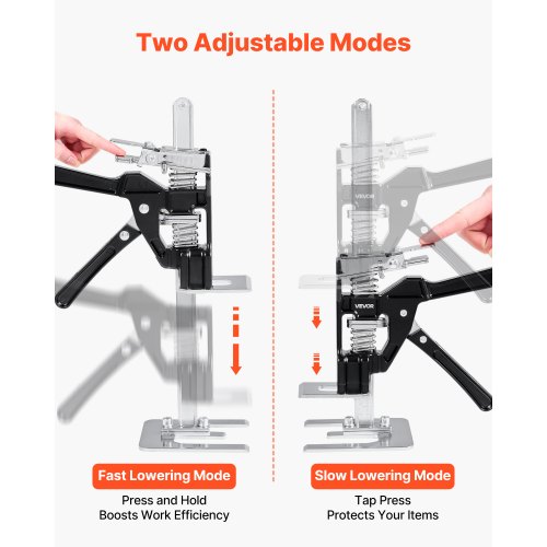 VEVOR Cric a Braccio per Risparmiare Lavoro, 2 PZ, Carico 200 kg Cric a Braccio in Metallo con Livella Magnetica, Sollevamento Fino a 195 mm 2 Modalità di Regolazione, per Porte, Finestre, Nero