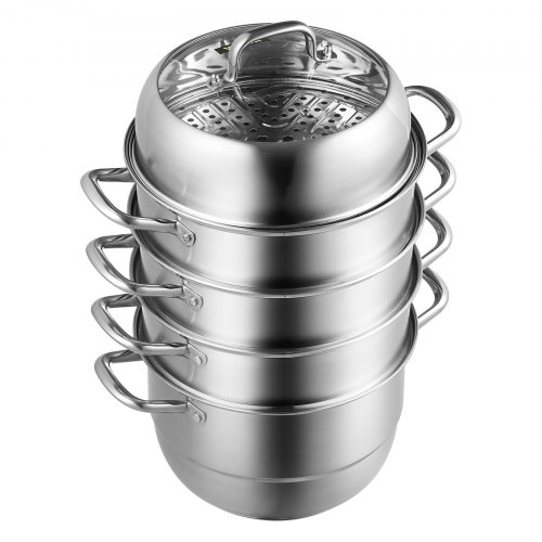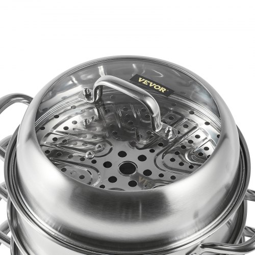 VEVOR Pentola a Vapore 3 Ripiani Pentola Vaporiera 28 cm Capienza Circa 8 Litri, Vaporiera Multicottura in Acciaio Inox per Alimenti Coperchio in Vetro, Vaporiera Multifunzionale con Griglia Coperchio