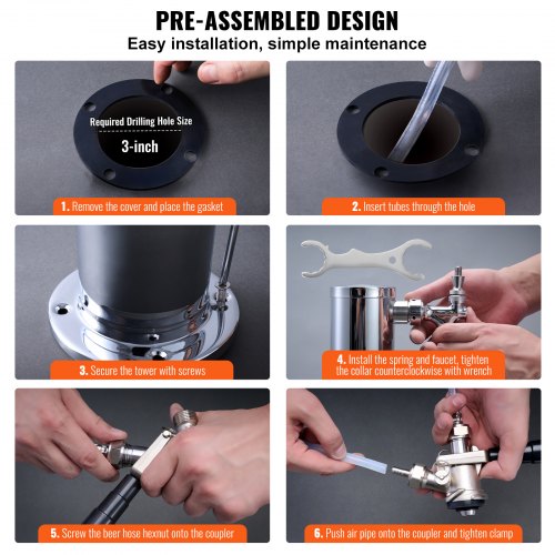 VEVOR Distributore a torre per birra alla spina con rubinetto singolo, Dispenser Torre per birra in fusto in acciaio inox, Kit torre per birra artigianale con tubi preassemblati per feste, bar