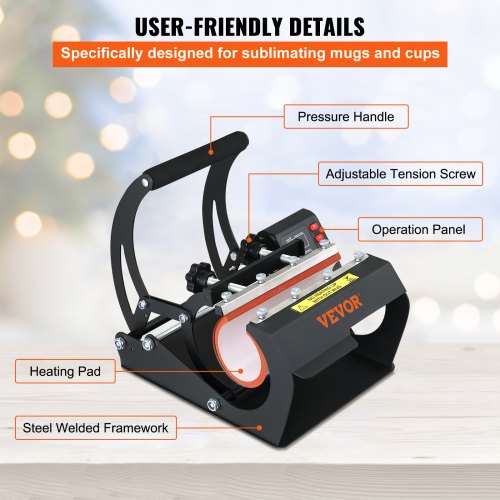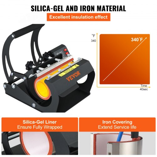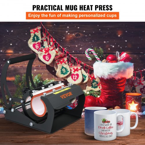 VEVOR Pressa di Calore della Tazza, 500 W Macchina della Pressa di Calore a Trasferimento Termico Nero in Gel di Silice e Ferro, Può Trasferire Immagini Colorate su Tazze in Ceramica, Tazze da Caffè