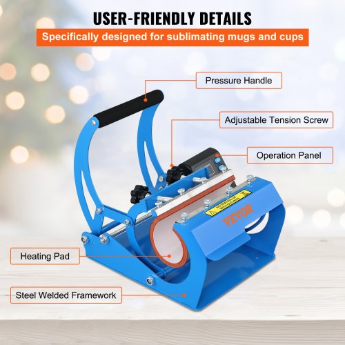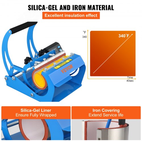 VEVOR Pressa di Calore della Tazza, 500 W Macchina della Pressa di Calore a Trasferimento Termico Blu in Gel di Silice e Ferro, Può Trasferire Immagini Colorate su Tazze in Ceramica, Tazze da Caffè