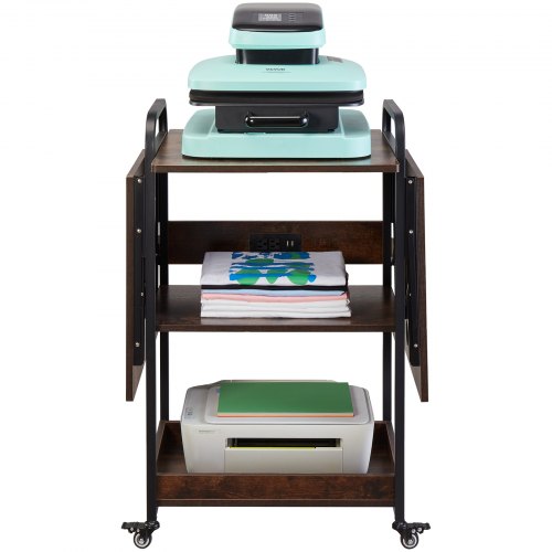 VEVOR Tavolo per Pressa di Calore con Stazione Ricarica, Supporto Mobile per Pressa di Calore a 3 Livelli, Supporto per Stampante Pieghevole con Ruote, Banco Lavoro in Metallo Rotolante, Marrone