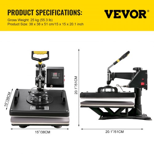 VEVOR Macchina per Pressatura a Caldo Automatica, 38 x 38 cm, per Magliette con Rilascio Automatico e Pressione Regolabile, Display Digitale, per Progetti di Trasferimento Termico, Bianco