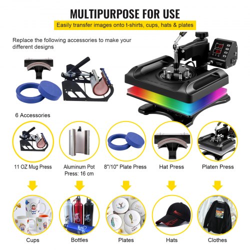 VEVOR Macchina per Pressatura a Caldo 380 x 380 mm 5 in 1 per Magliette Nero Blu
