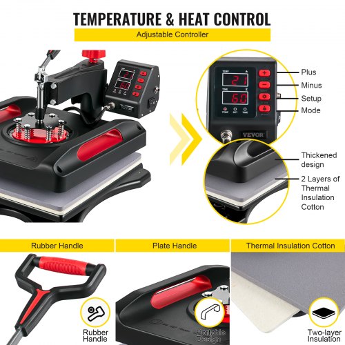 VEVOR termopressa Pressa di Calore 1000 W 220 V Nera Macchina Transfer Digitale per Pressa a Caldo 10 in 1 30x38cm Macchina per Sublimazione