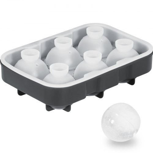 VEVOR Set di Vassoi per Palline Cubetti di Ghiaccio 6 Pezzi Colore Nero Sfera Diametro 4,3cm Cubetti 5x5x5cm, Stampo per Cubetti di Ghiaccio Palline di Ghiaccio Materiale in Silicone Cocktail Vodka