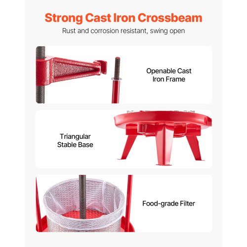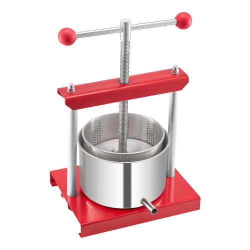 VEVOR Torchio per Vini di Frutta 6 Litri Torchietto Manuale Pressa per Succo di Frutta con Impugnatura Cestello in Acciaio Inossidabile, Estrattore per Olio d'Oliva Uva Mela Sidro Verdure Miele Succo