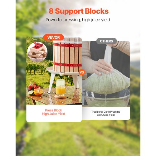 VEVOR Torchio per Vini di Frutta 18 Litri 4,75 Galloni Torchietto Manuale Pressa per Succo di Frutta con Impugnatura Cestello in Legno Massello Estrattore per Olio d'Oliva Uva Mela Sidro Verdure Miele