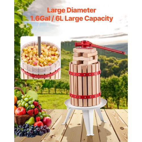 VEVOR Torchio Manuale per Vini di Frutta 6 Litri 1,6 Galloni Torchietto Pressa per Succo Spremiagrumi con Impugnatura con Cestello in Legno Massello Estrattore per Olio d'Oliva Uva Mela Verdure Miele