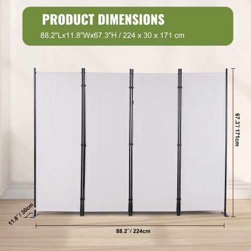 VEVOR Paravento Divisorio a Pannello per Ambiente di Privacy Pieghevole 4 Pezzi 224 x 30 x 171cm in Acciaio al Carbonio Tessuto in Poliestere, Paravento Divisorio Bianco per Soggiorno Ufficio Giardino