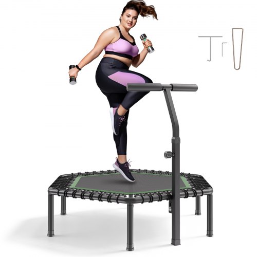 VEVOR Mini Trampolino per Fitness Esercizi da Interno 1385 mm, Trampolino Elastico Carico max 205 kg Altezza Regolabile a 3 Livelli con Maniglia in Schiuma per Esercizi Allenamento Salto per Adulti