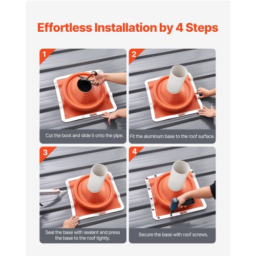 VEVOR Guarnizione per Tubo del Tetto Diametro Esterno 254-457 mm, Guarnizione Flessibile in Silicone Alta Temperatura -74℃-225℃, Base Quadrata in Metallo Resistente, per Camini Tubi di Sfiato Esterni