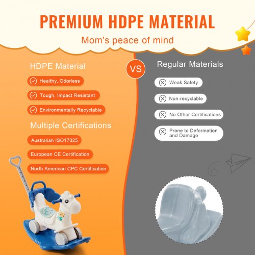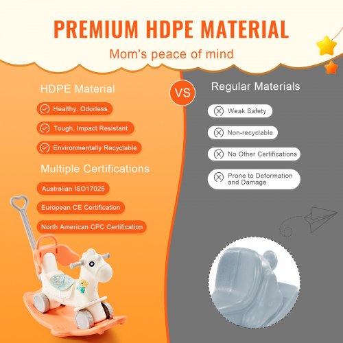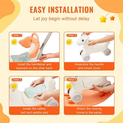 VEVOR Cavallo a Dondolo 3 in 1, Cavalluccio a Dondolo per Bambini da 1 a 3 Anni, con Tavola di Equilibrio Rimovibile, 4 Ruote Lisce, Supporta Fino a 36 kg Materiale HDPE, Oscillazione a 40°