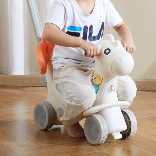 VEVOR Cavallo a Dondolo 5 in 1, Cavalluccio a Dondolo per Bambini da 1 a 3 Anni, con Trampolino, Tavola di Equilibrio Staccabile, Maniglia di Spinta e 4 Ruote Lisce, Supporta Bambini 36 kg Bianco