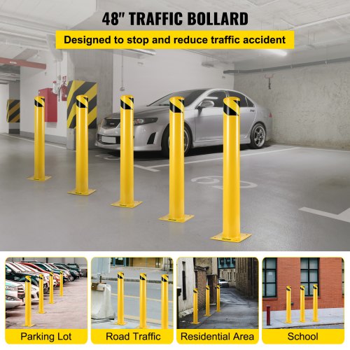 VEVOR Palo di Sicurezza 122x14 cm, Barriera di Sicurezza in Acciaio con Tubo Verniciato a Polvere Gialla, con 4 Bulloni di Ancoraggio Gratuiti, per Aree Sensibili al Traffico