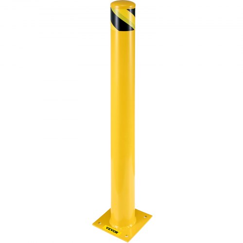 VEVOR Palo Sicurezza 106,6 x 11,4 cm Barriera di Sicurezza in Acciaio Tubi Verniciati a Polvere Gialla con 4 Bulloni di Ancoraggio Gratuiti per Aree Sensibili al Traffico