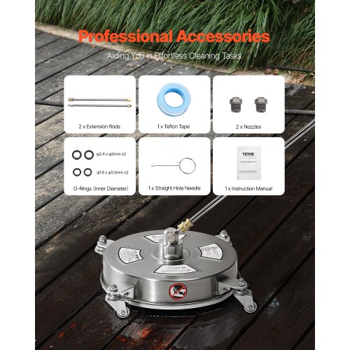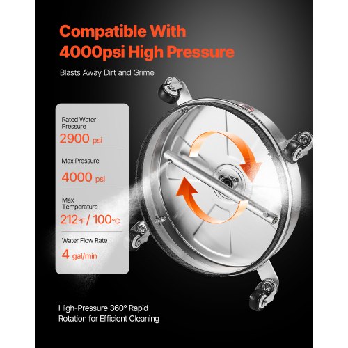 VEVOR Idropulitrice per Superfici Diametro 609,6mm Pulitrice Lavapavimenti in Acciaio Inox con Maniglia a Ruota ad Alta Pressione Massima circa 276 bar, Idropulitore per Pavimenti Superficie Giardino