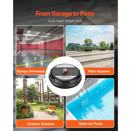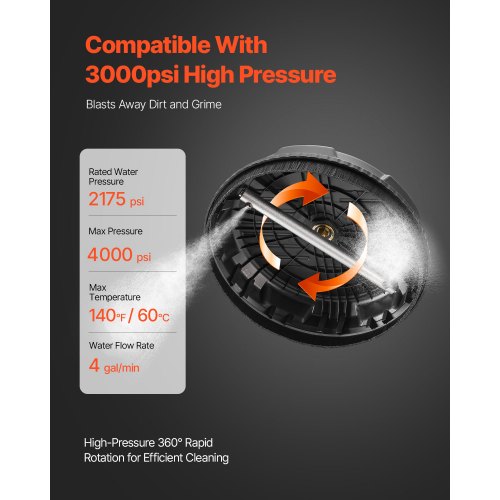 VEVOR Idropulitrice per Superfici Diametro 380mm Pulitrice Lavapavimenti in Plastica PP Idropulitrice Alta Pressione circa 276 bar con Bacchette di Estensione, Idropulitore per Pavimenti Superficie