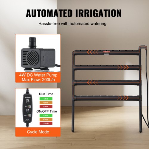 VEVOR Sistema di Coltivazione Idroponica, 72 Luoghi 2 Strati, Tubi in PVC Grigio Scuro Kit di Coltivazione Idroponica con Pompa dell'Acqua, Timer, Cestini e Spugne per Frutta, Verdura, Erbe
