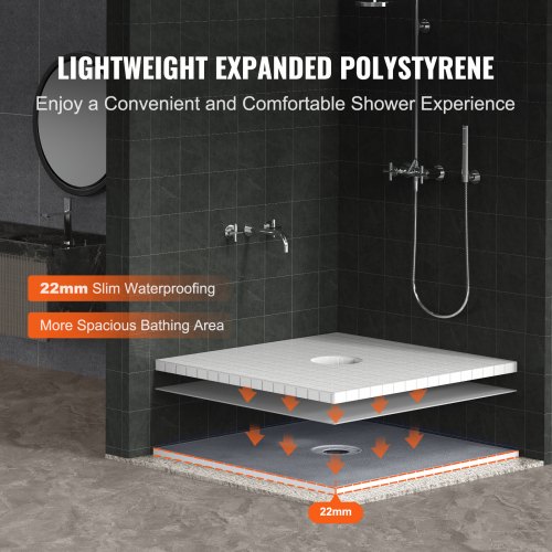 VEVOR Kit cordolo doccia, kit piatto doccia 72"x72" con scarico centrale da 6,3", kit di installazione doccia leggero in EPS con 2 panni impermeabili, bastoncini inclinati per piatto doccia adatti