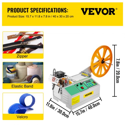 VEVOR Tagliatrice Automatica del Nastro a Freddo Digital Cutter 95mm / 3.7in Larghezza di Taglio per Nastro in Plastica Cintura Elastica con Cerniera in Velcro