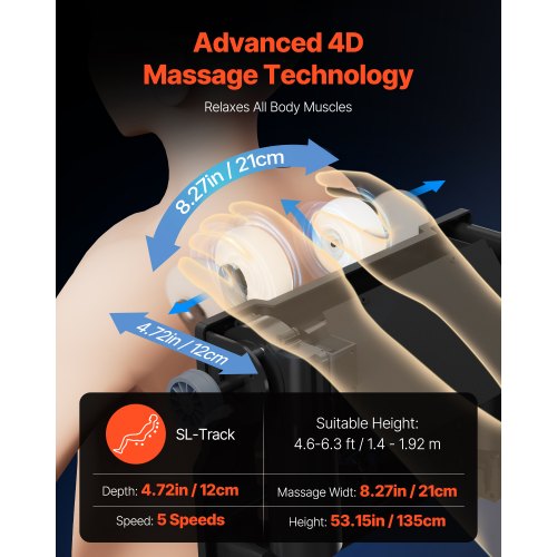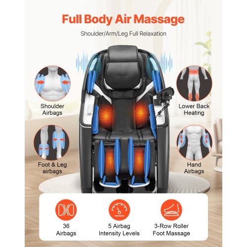 VEVOR Sedia da Massaggio con Pista SL, Poltrona Reclinabile a Gravità Zero per Tutto Corpo, Modalità Allungamento Yoga, Poltrona Massaggiante 3D/4D con Voce AI, Riscaldamento, 36 Airbag, Schermo TFT