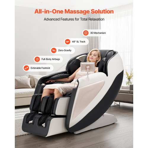 VEVOR Sedia da Massaggio, 18 Modalità Automatiche, Poltrona Reclinabile a Gravità Zero per Tutto Corpo con Pista SL, Poltrona Reclinabile con Massaggio 3D e Riscaldamento, Rullo per Piedi, Schermo LCD