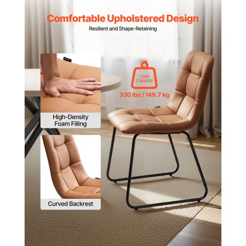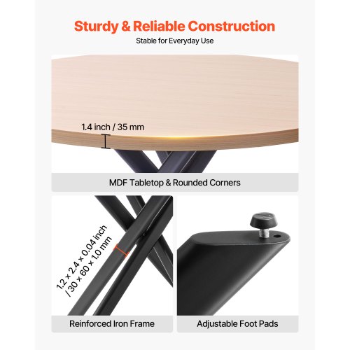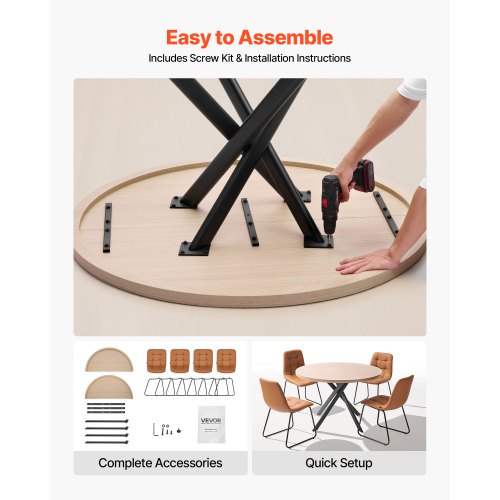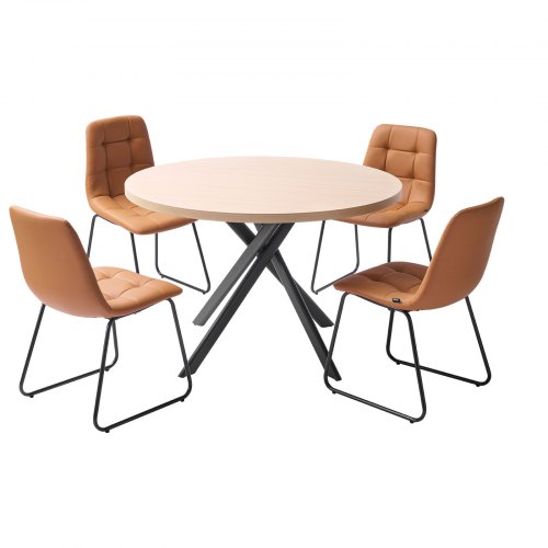 VEVOR Set da Pranzo da 5 Pezzi, Tavolo da Cucina Rotondo Salvaspazio con 4 Sedie Arancioni Imbottite, Cuscini in Pelle PU, Scrivania Moderna Colore Legno con Piedini Regolabili per Sala da Pranzo