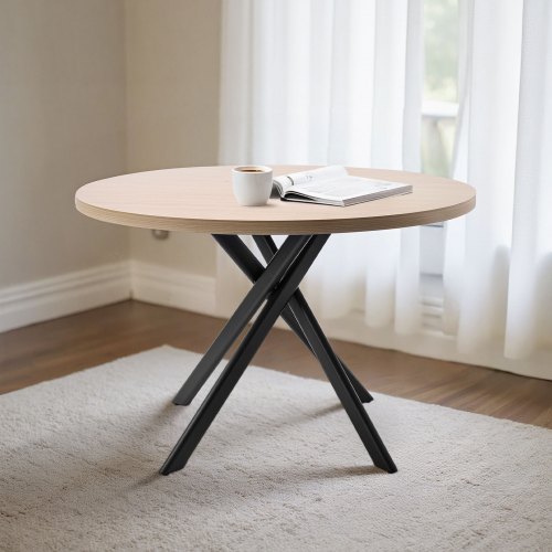 VEVOR Tavolo da Pranzo per Esterni, Tavolo da Bistrot da Giardino Rotondo in Metallo con Doghe in Acciaio da 120 cm, con Foro per Ombrellone da 38 mm, Mobili da Esterno per Prato, Giardino