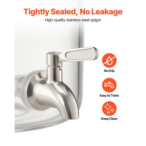 VEVOR Distributore di Bevande 13 L per Feste, Contenitore di Succhi in Vetro con Supporto in Legno con Rubinetto in Acciaio Inox, Distributore di Tè Freddo, Limonata per Ristoranti, Hotel e Feste