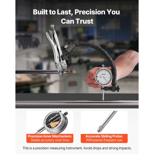 VEVOR Indicatore di Prova a Quadrante con 360° Braccio e Pinza di Bloccaggio, Precisione 0,03 mm, Intervallo 0-25,4 mm, per l'Impostazione della Macchina, Misurazione di Aree Ristrette