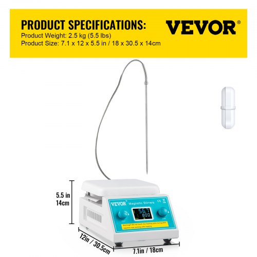 VEVOR Agitatore Magnetico, Piastra di Agitazione 0-1500 RPM con Manopola di Velocità Regolabile, Kit Agitatore a Piastra da 21 Litri, Barra di Agitatore Inclusa